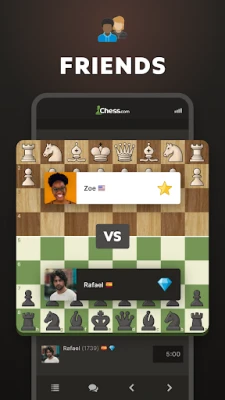 বিশ্বের বৃহত্তম অনলাইন দাবা সম্প্রদায়ে যোগ দিন! আপনার বন্ধুদের সাথে বা বিশ্বজুড়ে লাখো খেলোয়াড়ের সাথে রিয়েল-টাইমে প্রতিযোগিতা করুন। এক মিনিটের দ্রুত গতি থেকে শুরু করে ৩০ মিনিট বা তার বেশি সময়ের ম্যাচে অংশ নিন। টুর্নামেন্টে প্রবেশ করুন, লিডারবোর্ডে আপনার স্থান তৈরি করুন এবং সেরা খেলোয়াড়দের তালিকায় নিজের নাম দেখুন। ব্লিটজ, বুলেট, ফিশার-র্যান্ডম (Chess960) এর মতো বিভিন্ন আকর্ষণীয় দাবার ধরন উপভোগ করুন। Hikaru, GothamChess, বা Magnus-এর মতো দাবার সুপারস্টারদের খেলা দেখুন এবং ২০টিরও বেশি বোর্ড থিম ও থ্রিডি টুকরা দিয়ে আপনার খেলার অভিজ্ঞতা ব্যক্তিগতকৃত করুন। Chess.com নিশ্চিত করে আপনার প্রতিটি দাবা যাত্রা যেন অসাধারণ হয়।