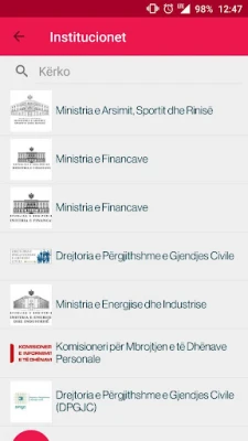 e-albania.al এর মাধ্যমে আপনি অসংখ্য গুরুত্বপূর্ণ পরিষেবা আপনার Android ফোন বা ট্যাবলেটে সরাসরি পেতে পারেন। এর মধ্যে রয়েছে বিদ্যুতের বিল, সড়ক ট্রাফিকের জরিমানা (ফাইন), ড্রাইভিং লাইসেন্স পয়েন্টের তথ্য, আদালতের মামলার অগ্রগতি পর্যবেক্ষণ, গাড়ির করের বিবরণ, নাগরিক অবস্থার ডেটা, জাতীয় নিবন্ধন কেন্দ্রে প্রাথমিক ব্যবসা নিবন্ধন সংক্রান্ত তথ্য, স্থানীয় কর ও ফি, ম্যাট্রিক পরীক্ষার ফলাফল, সরকারি ভর্তুকিপ্রাপ্ত ওষুধের তালিকা এবং স্বাস্থ্য কার্ডের ডেটা সহ আরও অনেক কিছু। এই বিস্তৃত পরিষেবাগুলির মাধ্যমে, e-albania.al আপনার দৈনন্দিন সরকারি কাজগুলিকে অভূতপূর্ব সুবিধা প্রদান করে।