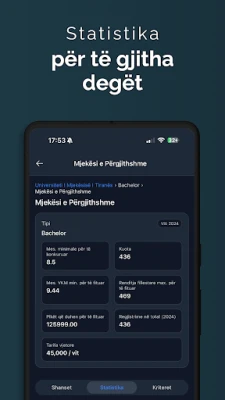উচ্চশিক্ষার পথ অনেক সময় বিভ্রান্তিকর হতে পারে, বিশেষ করে আলবেনিয়ান শিক্ষার্থীদের জন্য যারা তাদের ভবিষ্যৎ নিয়ে সঠিক সিদ্ধান্ত নিতে চান। এই চ্যালেঞ্জিং সময়ে, একটি নির্ভরযোগ্য এবং সুসংগঠিত প্ল্যাটফর্মের প্রয়োজন অপরিহার্য। এই অ্যাপ্লিকেশনটি বিশেষভাবে তৈরি করা হয়েছে আলবেনিয়ার মাধ্যমিক উত্তীর্ণ শিক্ষার্থীদের কথা মাথায় রেখে, যাতে তারা তথ্যবহুল সিদ্ধান্ত নিতে পারে এবং তাদের শিক্ষাজীবনের সঠিক দিকনির্দেশনা খুঁজে পায়। একটি সহজবোধ্য এবং নিয়মিত আপডেট হওয়া ইন্টারফেসের মাধ্যমে, এটি আপনাকে উচ্চশিক্ষা প্রতিষ্ঠান এবং অধ্যয়ন প্রোগ্রাম সম্পর্কে সমস্ত প্রয়োজনীয় তথ্য এক নজরে দেখতে সাহায্য করে।